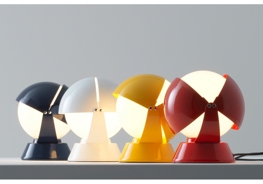 Buonanotte, von Giovanni Luigi Gorgoni für Stilnovo entworfen, ist eine Tischlampe mit Metallstruktur, die in vier Ausführungen lackiert ist: weiß, rot, gelb und blau. Der interne Diffusor ist weiß, um eine hervorragende Helligkeit zu gewährleisten, und verwendet eine LED-Lichtquelle.
