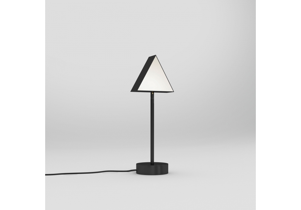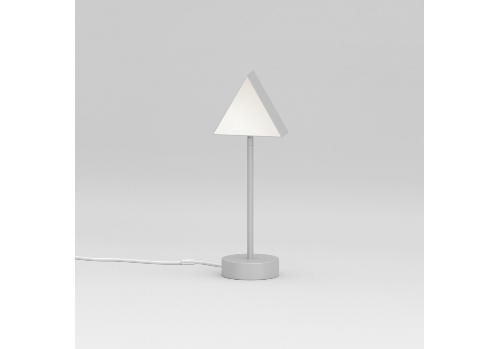 Triangle Box von Atelier Areti entworfen, ist eine Tischlampe aus pulverbeschichtetem Metall oder gebürstetem Messing und Acrylplatte.
