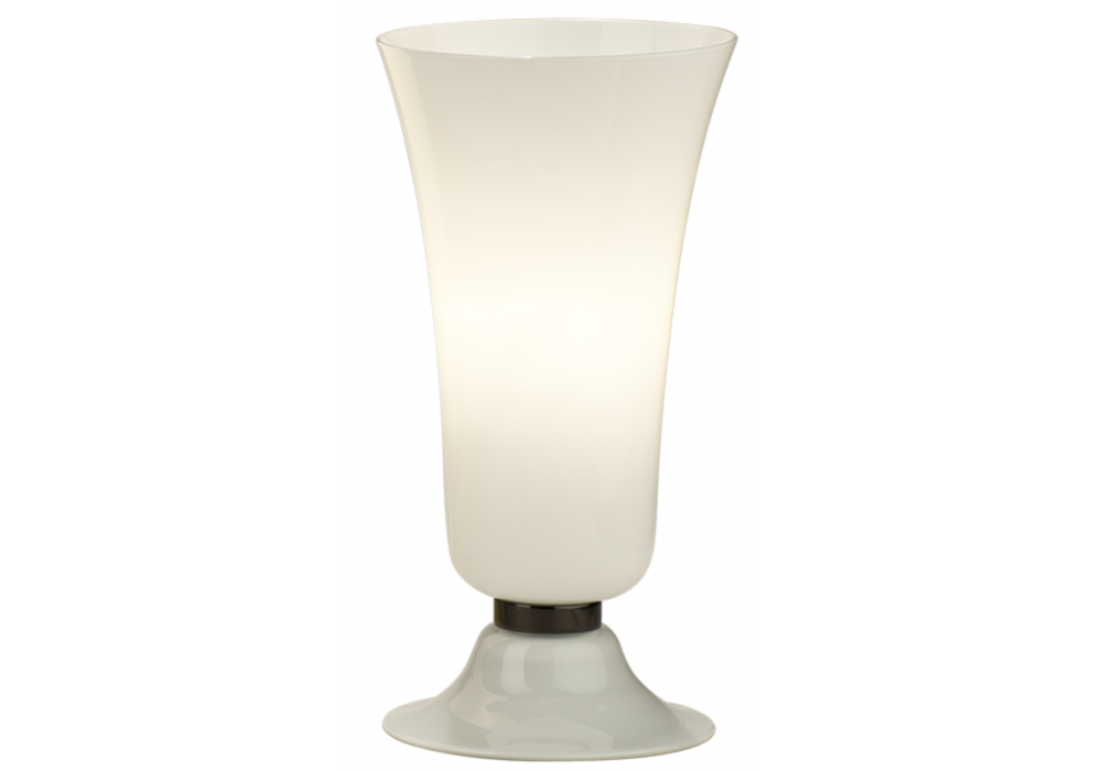Anni Trenta, entworfen und hergestellt von Venini, ist eine dimmbare LED-Tischlampe, die in verschiedenen Ausführungen und Größen erhältlich ist. Der Diffusor besteht aus mundgeblasenem Opalglas, das durch Überlappen des Lattimo mit anderen Gläsern erhalten wird.