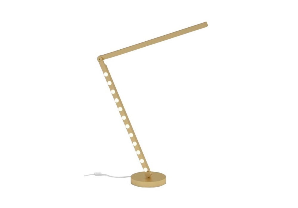 Linetype von Atelier Areti entworfen ist eine Tischleuchte aus gebürstetem Messing und weißen Acrylplatten. Erhältlich in verschiedenen Modellen.