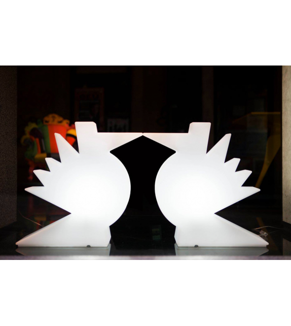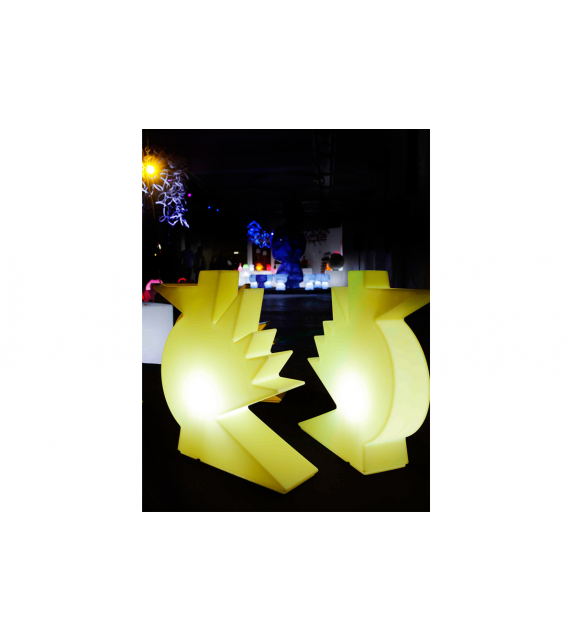 Here von Alessandro Mendini für Slide entworfen, ist eine kleine Tischleuchte mit einer hohen visuellen Wirkung, mit einer abstrakten und geometrischen Form. Erhältlich in der hellen Version und in der lackierten Version in verschiedenen Ausführungen