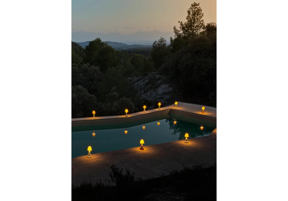 Firefly von Dept. Diseño y Decoración für Lladró entworfen, ist eine tragbare Tischleuchte. Der Lampenkörper besteht aus glänzendem Porzellan und ist in verschiedenen Ausführungen erhältlich, während der Lampenschirm aus durchscheinendem Porzellan besteht. Firefly ist mit einem USB-Anschluss zum Aufladen und einem drahtlosen Konnektivitätssystem ausgestattet.