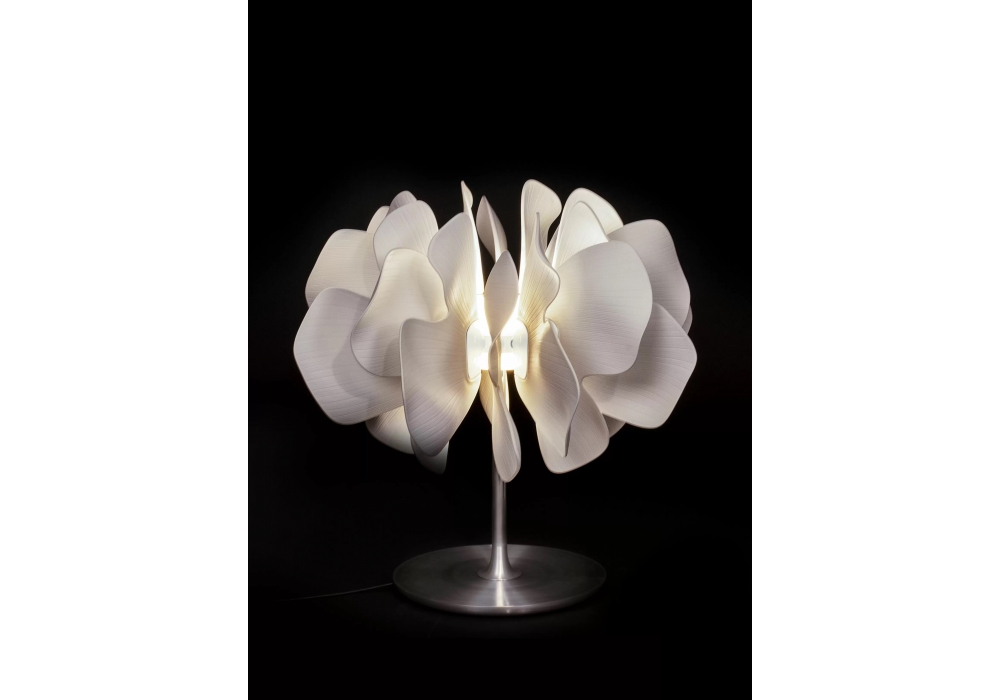 Nightbloom, entworfen von Dept. Diseño y Decoración und entworfen von Marcel Wanders für Lladró, ist eine Tischleuchte mit runder Basis und röhrenförmiger Metalltragstruktur. Der Diffusorkörper besteht aus einer Reihe handgefertigter Porzellanblätter. Nightbloom ist in verschiedenen Ausführungen erhältlich.