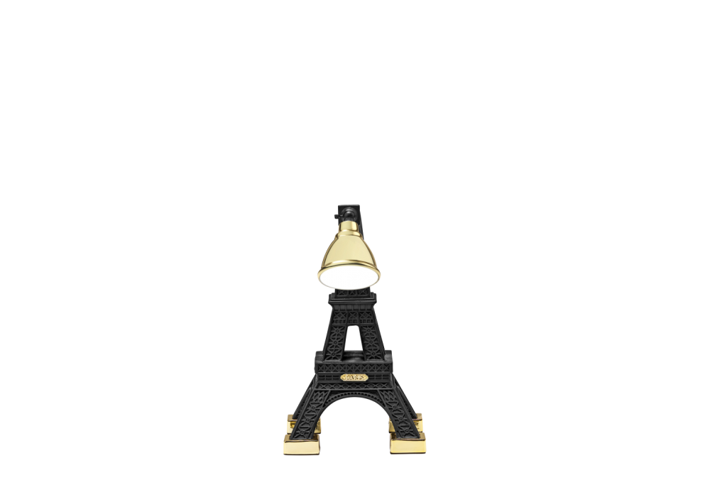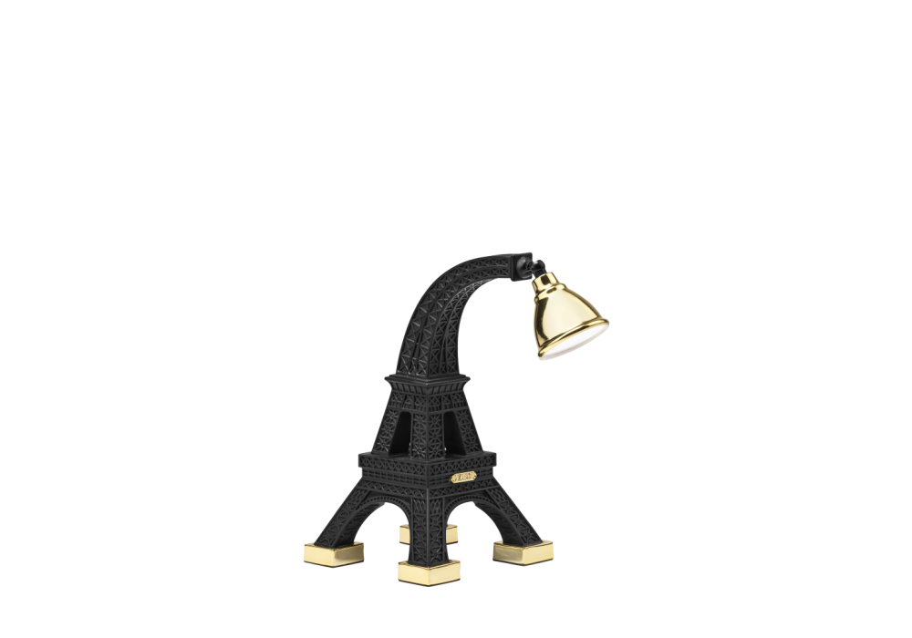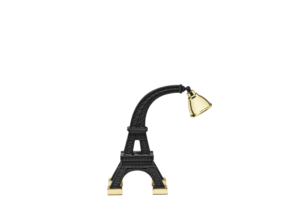 Paris XS, von Studio Job für Qeeboo entworfen, ist eine schwarz lackierte Tischlampe mit verstellbarem Kuppeldiffusor aus Messing.