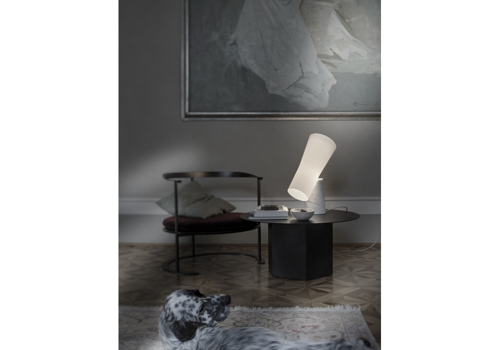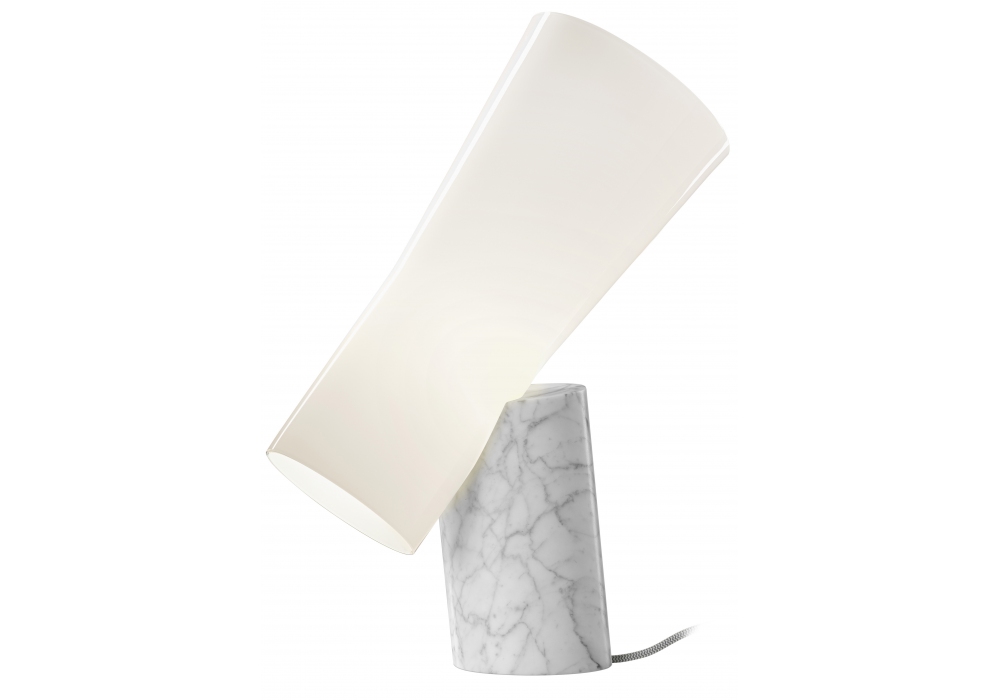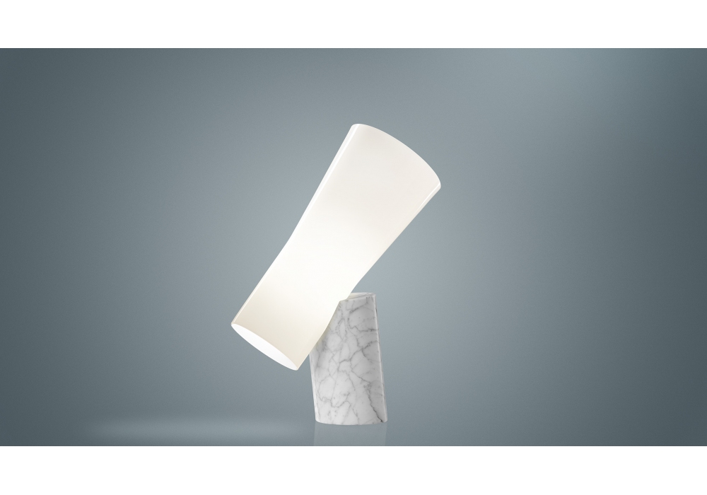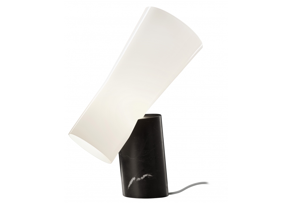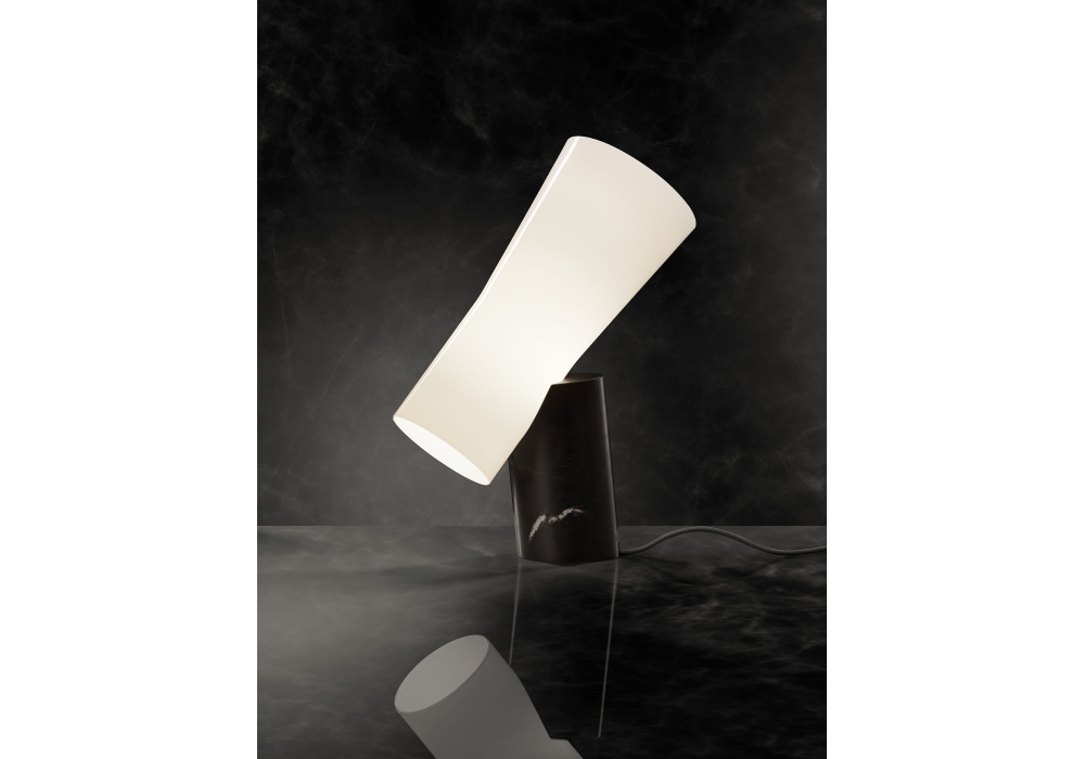 Nile von Rodolfo Dordoni entworfen, ist eine Tischlampe mit zylindrischer Basis aus weißem Carrara- oder schwarzem Marquina-Marmor. Der Diffusor besteht aus weißem, mundgeblasenem Glas und schirmt eine dimmbare LED-Nachrüstlichtquelle ab.