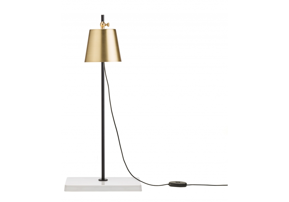 Lab Light von Anatomy Design für Karakter entworfen, ist eine Tischleuchte mit Diffusor aus gebürstetem Messing, transparent lackiert, Stiel aus lackiertem Stahl und Sockel aus weißem Porzellan. Netzteil mit austauschbaren Steckern (EU / UK / AU) im Lieferumfang enthalten.