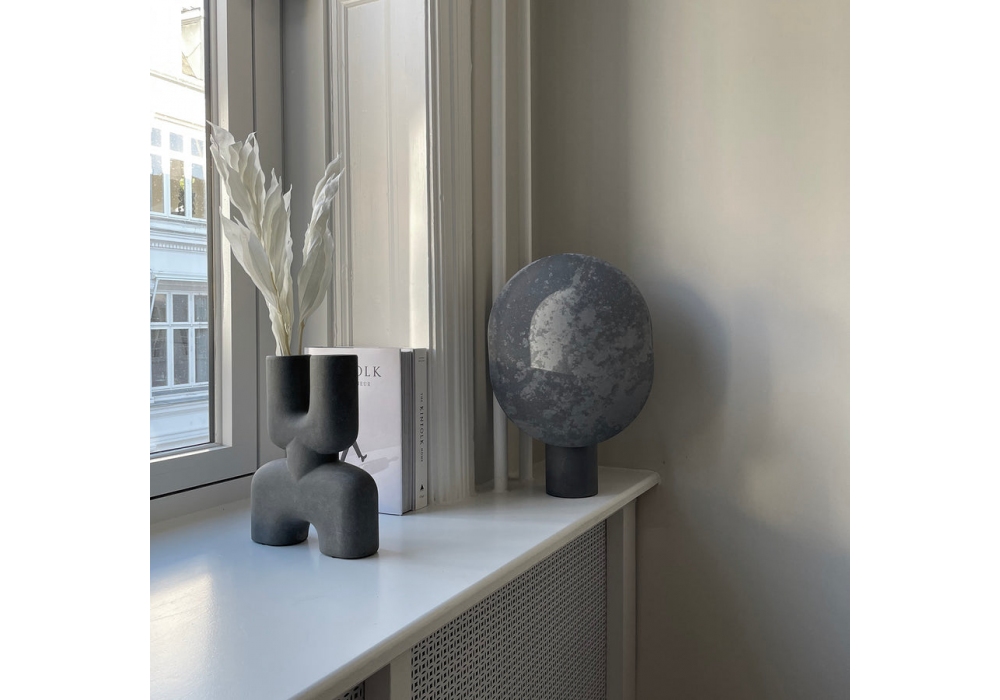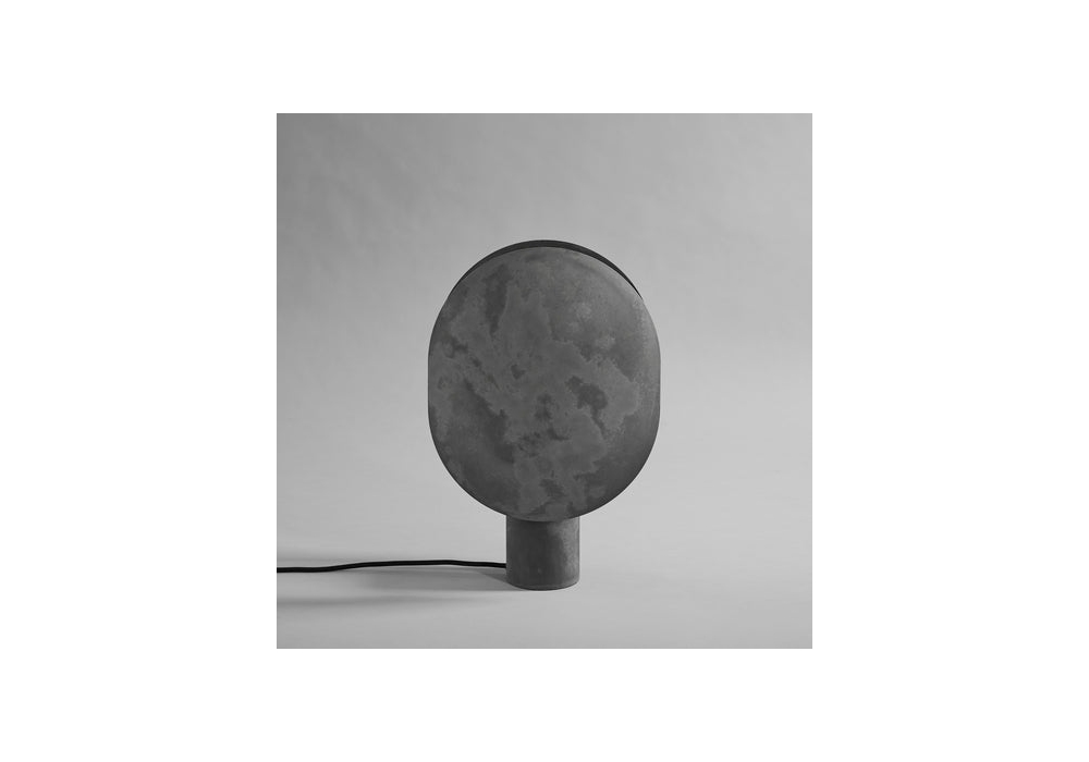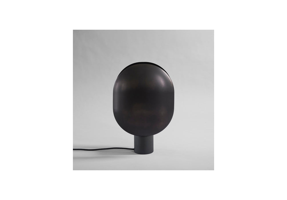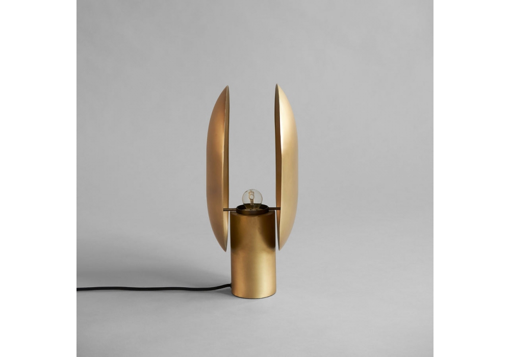 Clam von Kristian Sofus Hansen & Tommy Hyldahl für 101 Copenhagen entworfen, ist eine Tischlampe aus plattiertem Metall, verfügbar in verschiedenen Ausführungen oder oxidiert.