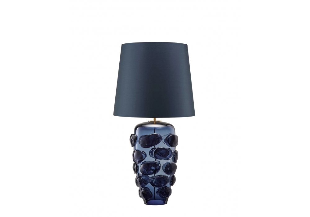 Blob entworfen und hergestellt von Porta Romana, ist eine strukturierte Tischlampe aus mundgeblasenem Glas mit geformten Glasapplikationen und plattierten Metalldetails. Der Lampenschirm ist aus Stoff und schirmt eine Lichtquelle mit einer E27-Fassung vom Typ LED ab, die von einem Textilfaserkabel gespeist wird. Blob ist in verschiedenen Ausführungen für jedes einzelne Element erhältlich.