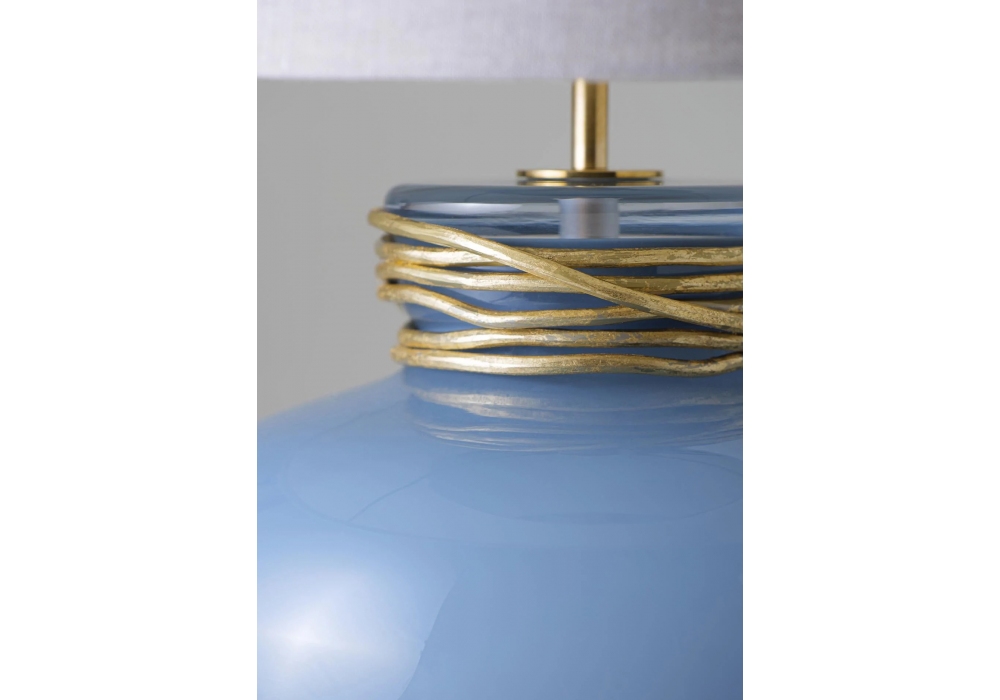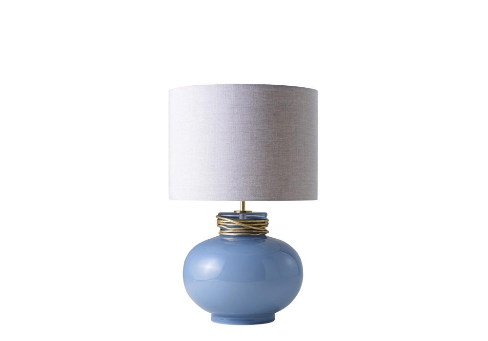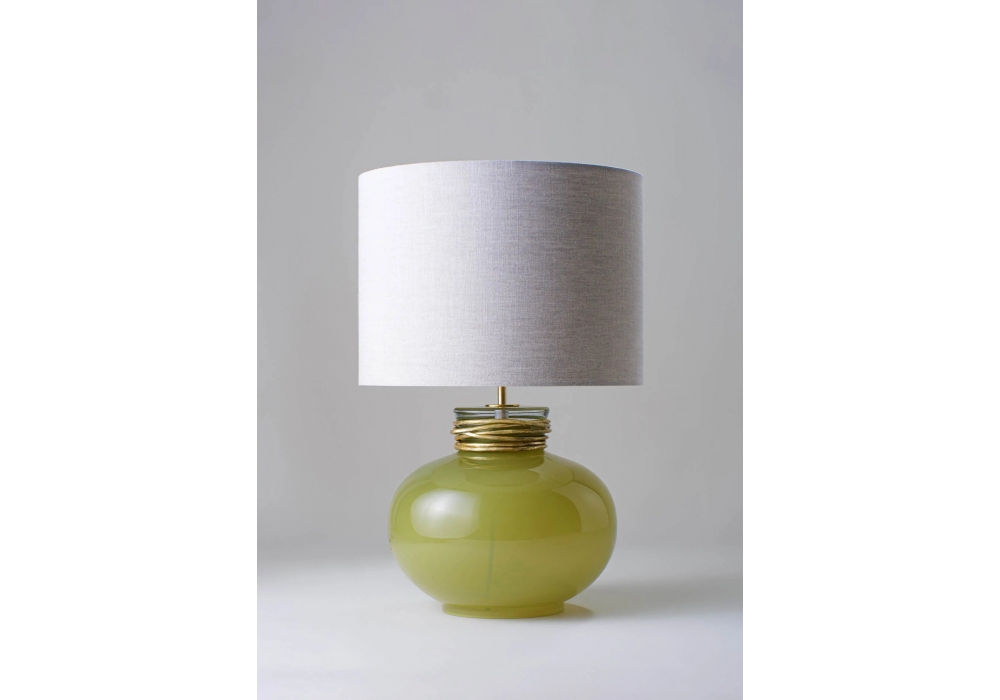 Boudica entworfen und hergestellt von Porta Romana, ist eine strukturierte Tischlampe aus mundgeblasenem Glas mit lackierten Metalldetails. Der Lampenschirm ist aus Stoff und schirmt eine LED-Lichtquelle mit einer E27-Fassung ab. Boudica ist in verschiedenen Ausführungen für jedes einzelne Element erhältlich.