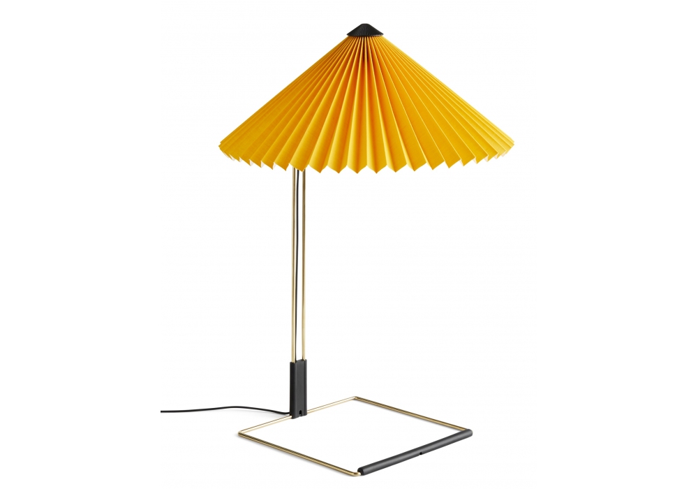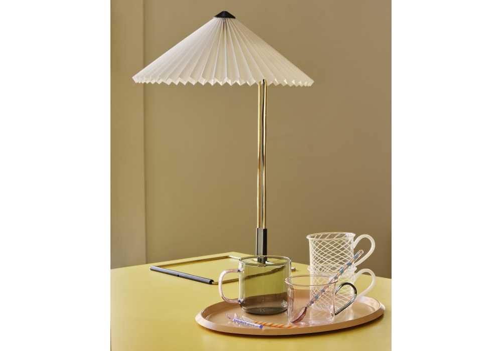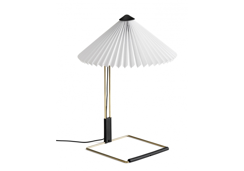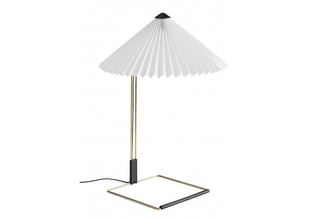 Matin von Inga Sempé für Hay entworfen, ist eine Tischleuchte mit einem Lampenschirm aus Baumwolle, der mit einer PVC-Folie gekoppelt ist. Diffusor aus schwarzem spritzgegossenem ABS mit oberer Schraube und gebogenem Stahldraht mit polierter Messingoberfläche mit Gegengewicht aus Feingussstahl und spritzgegossenem ABS. Schwarzes Silikonkabel mit ABS-Inline-Schalter. Verfügbar in verschiedenen Abmessungen und Ausführungen.