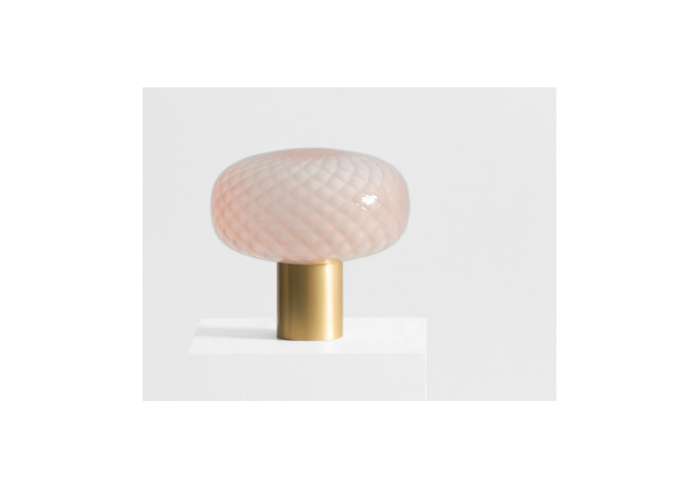 Bloom von Matteo Zorzenoni für Il Fanale entworfen ist eine Tischleuchte mit zylindrischem Sockel aus natürlichem Messing. Der Diffusor ist kreisförmig, besteht aus strukturiertem Glas und schirmt eine LED-Lichtquelle ab. Bloom ist in verschiedenen Modellen und Ausführungen erhältlich.