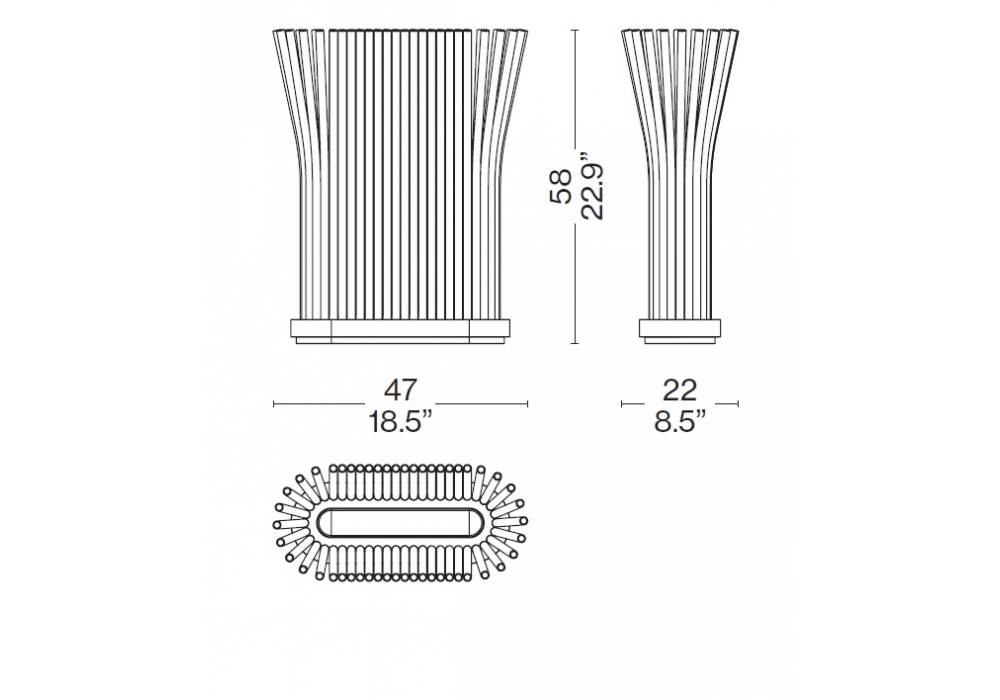Fluxus-E Oval von Paolo Ulian für Cassina entworfen, ist eine Tischleuchte mit Borosilikatglasstielen, natürlichem oder champagnerfarbenem Aluminiumsockel und PMMA-Diffusor.