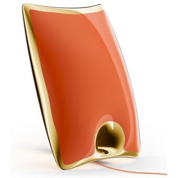 Valor.S von Philippe Starck für Cassina entworfen, ist eine handbemalte Tischleuchte aus glasierter Keramik und Aluminium. Die farbige Dekoration erfolgt immer auf der konvexen Seite. Verfügbar in mehreren Ausführungen.