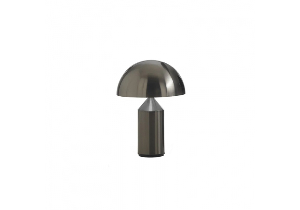 Atollo Black Nickel von Vico Magistretti für Oluce entworfen ist eine Tischleuchte die vollständig aus Metall in der Farbe Schwarznickel besteht. Der Diffusor hat eine Kuppelform und schirmt eine Lichtquelle. Atollo Black Nickel ist in verschiedenen Größen erhältlich.