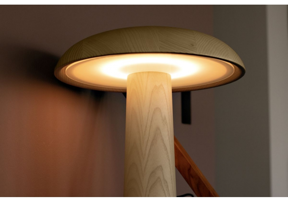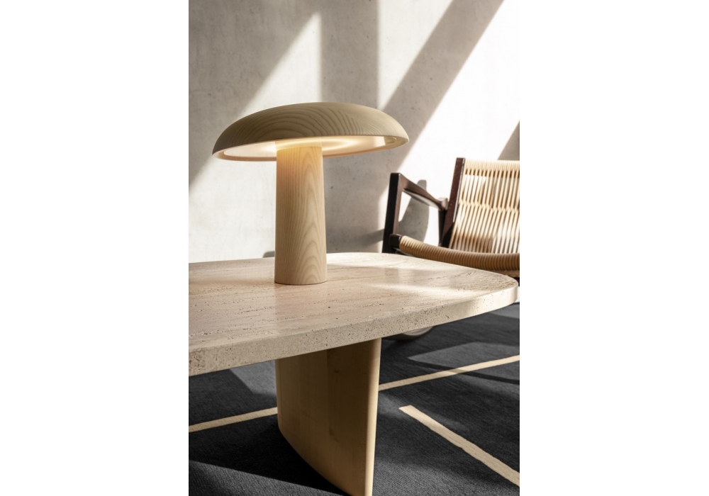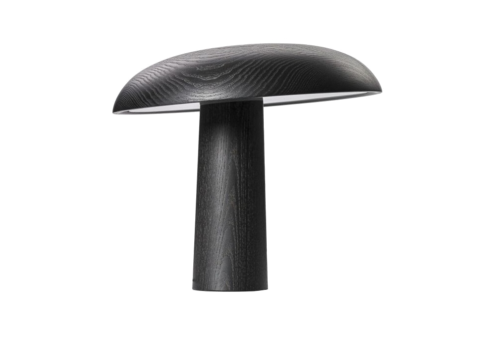 Forma von Christian Haas für ClassiCon entworfen, ist eine Tischleuchte mit Sockel und Lampenschirm aus massiver Esche, naturbelassen mit transparentem Lack oder schwarz lackiert, oder aus massivem Walnussholz, naturbelassen, mit transparentem Lack. Diffusorplatte aus Milchglas.