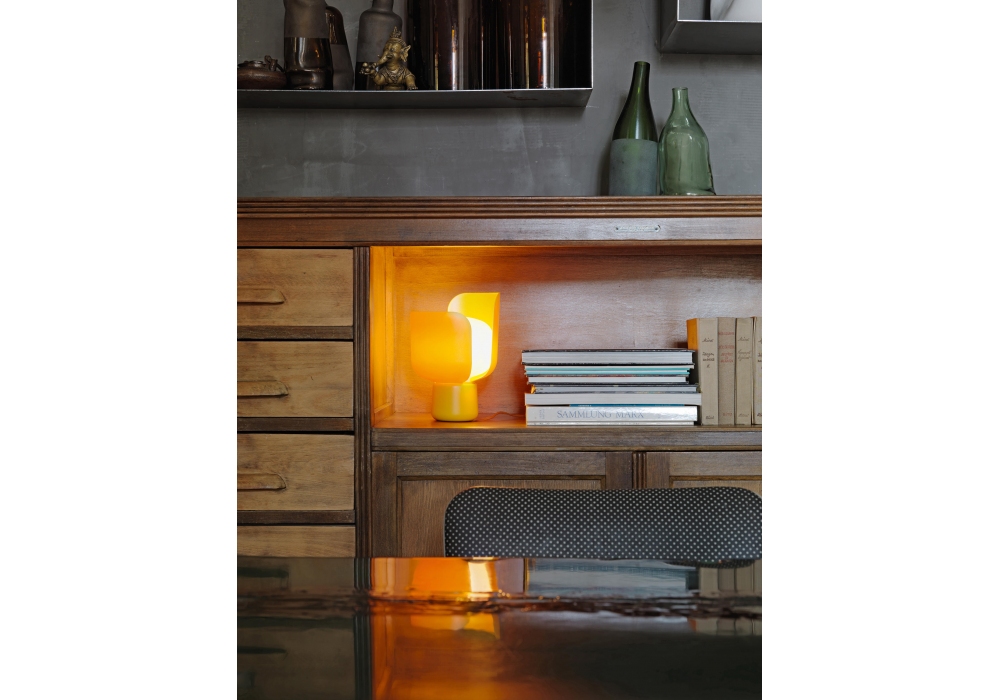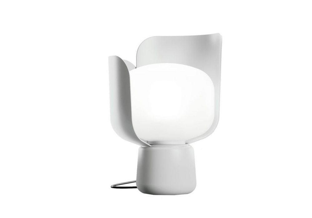 Blom von Andreas Engesvik für Fontana Arte entworfen, ist eine Tischleuchte mit diffusem Licht, das durch Drehen der Blütenblätter an der Basis eingestellt werden kann. Struktur aus lackiertem Aluminium und Blütenblätter aus Polycarbonat. Diffusor aus milchweißem, opalfarbenem Polyethylen. Transparentes Stromkabel, Schalter und Stecker. Verfügbar in verschiedenen Ausführungen.
