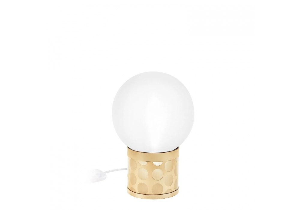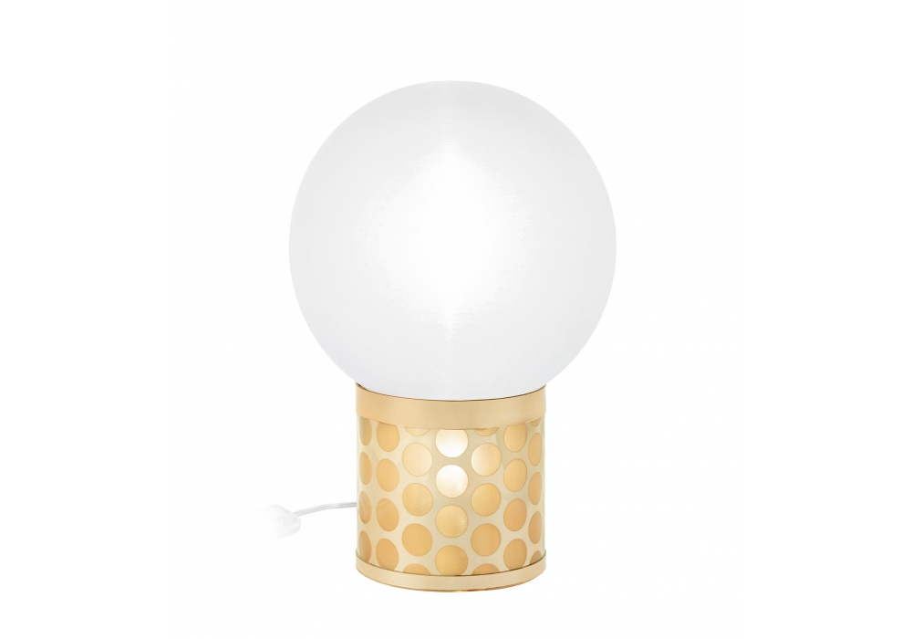 Atmosfera entworfen von Lorenza Bozzoli für Slamp ist eine Tischleuchte mit zylindrischem Sockel aus Goldflex® oder Pewterflex®. Der Diffusor ist kugelförmig aus weißem Methacrylat und schirmt eine dimmbare LED-Lichtquelle mit Filament ab. Atmosphere ist in verschiedenen Ausführungen und Modellen erhältlich.