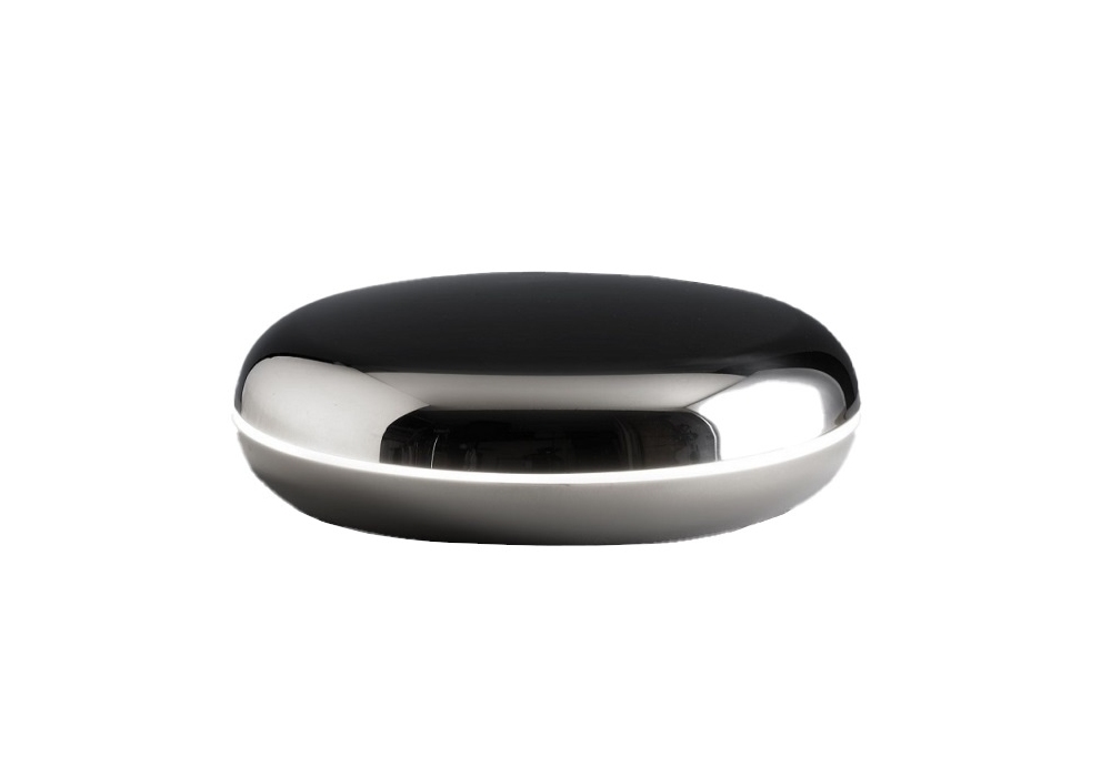 Loop von Voon Wong & Benson Saw für Fontana Arte entworfen, ist eine Tischlampe mit einstellbarem Licht durch Drehen des oberen Teils mit Struktur aus poliertem Metall. Transparentes Stromkabel, Schalter und Stecker.