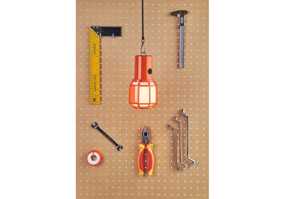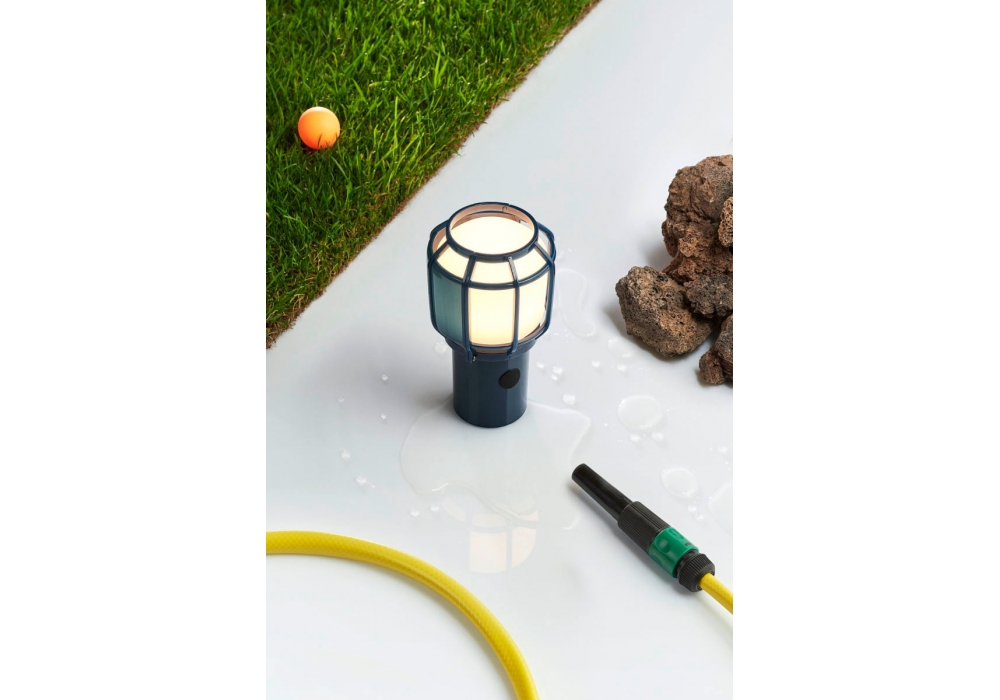 Chispa von Joan Gaspar für Marset entworfen, ist eine tragbare Tischleuchte aus Polycarbonat, Diffusor aus opalem Polyethylen, schwarzem Kabel und Metallhaken. Erhältlich in verschiedenen Ausführungen. Auch für den Außenbereich geeignet.