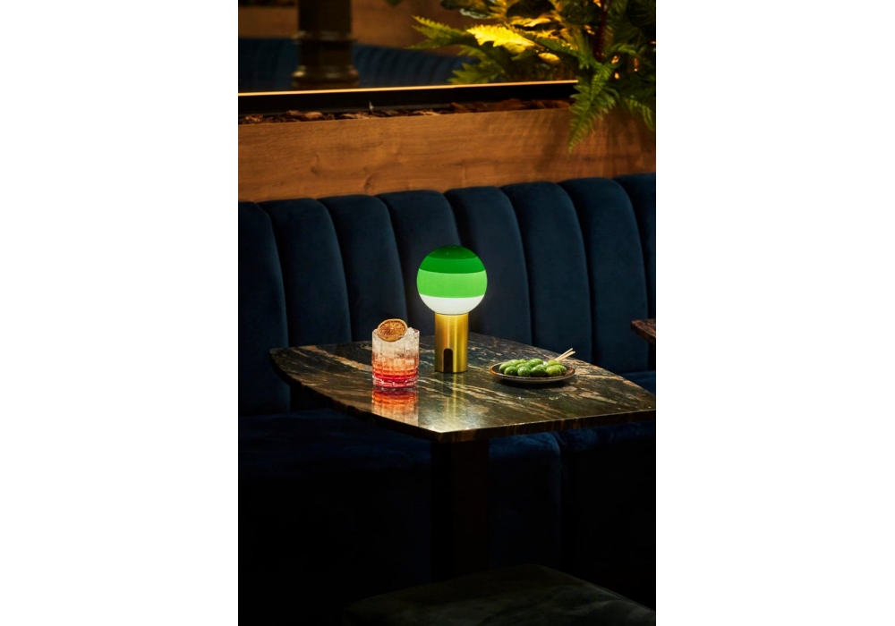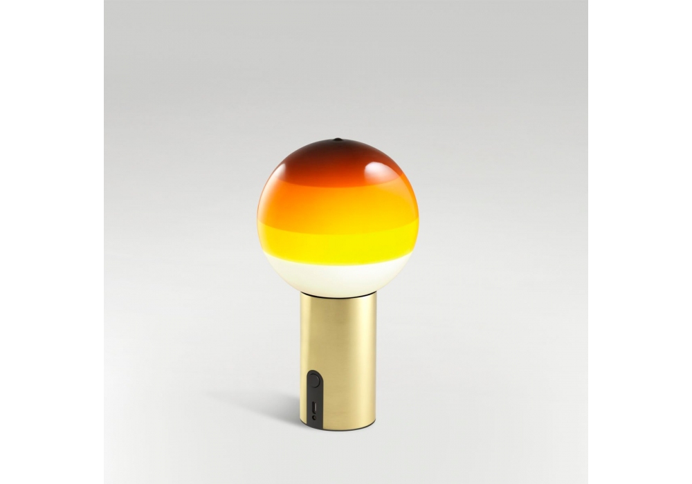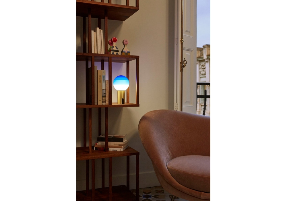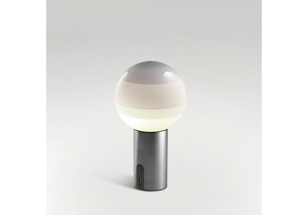 Dipping Light von Jordi Canudas für Marset entworfen, ist eine tragbare Tischleuchte aus Metall und einem Diffusor aus strahlend weißem mundgeblasenem Glas mit Schichtlackierung. Erhältlich in verschiedenen Ausführungen.