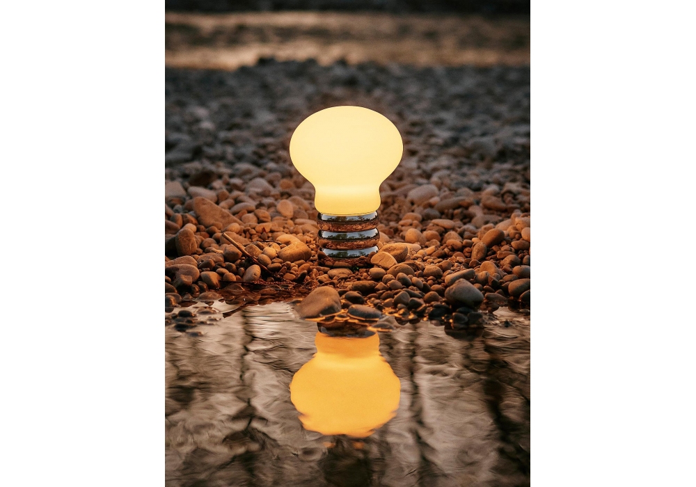 B.Bulb, entworfen und hergestellt von Ingo Maurer, ist eine Tischleuchte mit wiederaufladbarem Akku. Sie können es bequem von einem Raum zum anderen tragen, da es kein Kabel hat. Wiederaufladbar über USB-C-Technologie.
