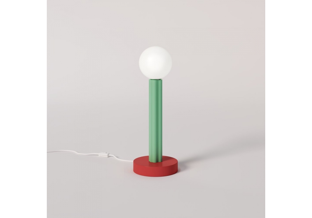 Profiles von Atelier Areti entworfen, ist eine Tischleuchte aus lackiertem Metall, erhältlich in verschiedenen Ausführungen und in zwei Modellen. Auf Wunsch ist es auch möglich, die Farben des Lampenschirms, des Rohrs und des Sockels individuell anzupassen.