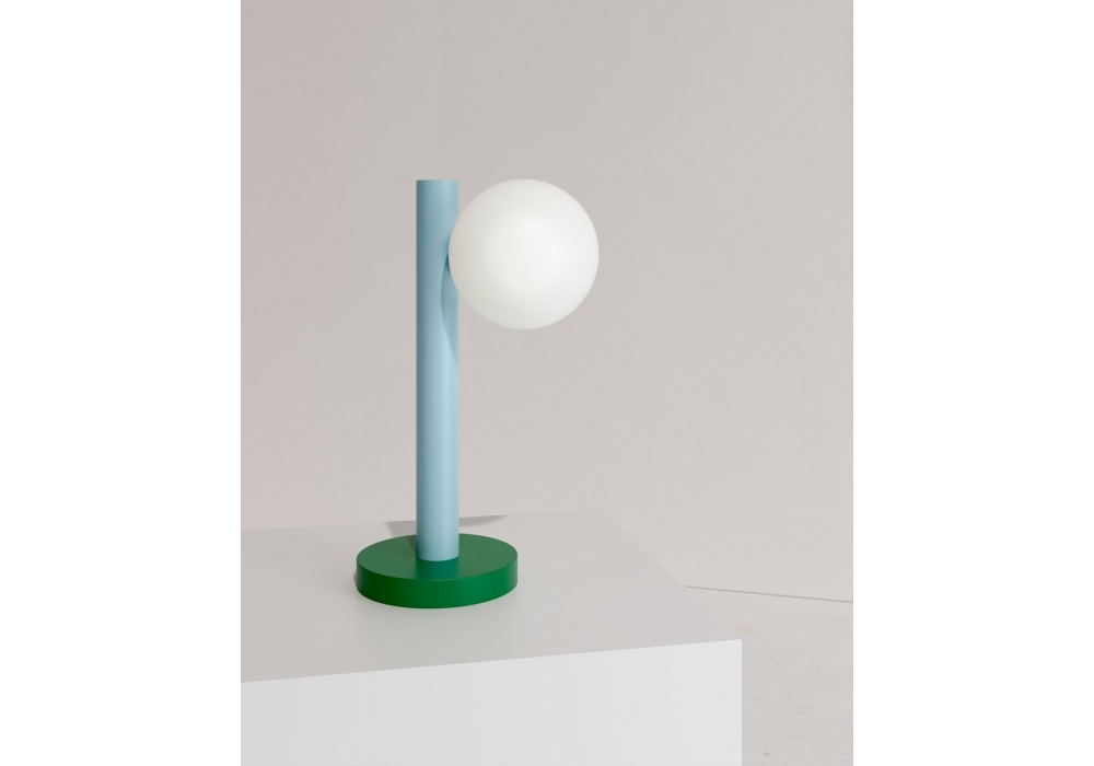 Tube With Globes and Cones von Atelier Areti entworfen, ist eine Tischleuchte aus lackiertem Metall, erhältlich in verschiedenen Ausführungen und Modellen. Auf Wunsch ist es auch möglich, die Farben von Kegel, Rohr und Sockel individuell anzupassen.