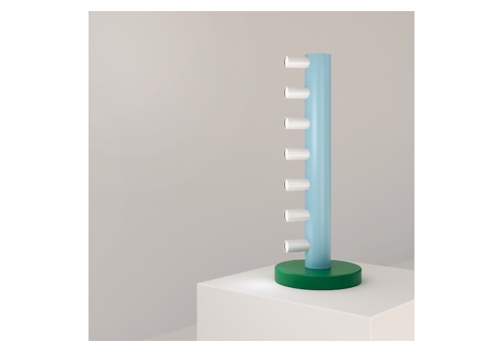 Array von Atelier Areti entworfen, ist eine Tischleuchte aus lackiertem Metall, erhältlich in verschiedenen Ausführungen. Auf Wunsch ist es auch möglich, die Farben des Sockels und der Rohre individuell anzupassen.