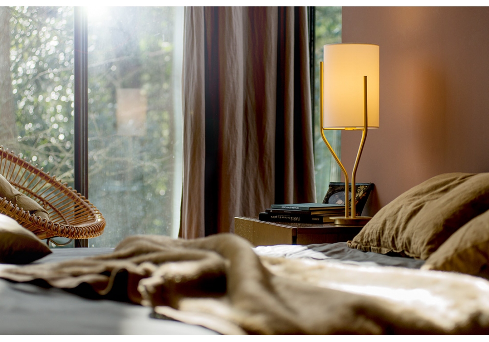Arborescence von Hervé Langlais für CVL Luminaires entworfen, ist eine Tischlampe mit Stofflampenschirm und satinierter oder polierter Struktur aus massivem Messing. Verfügbar in mehreren Ausführungen.