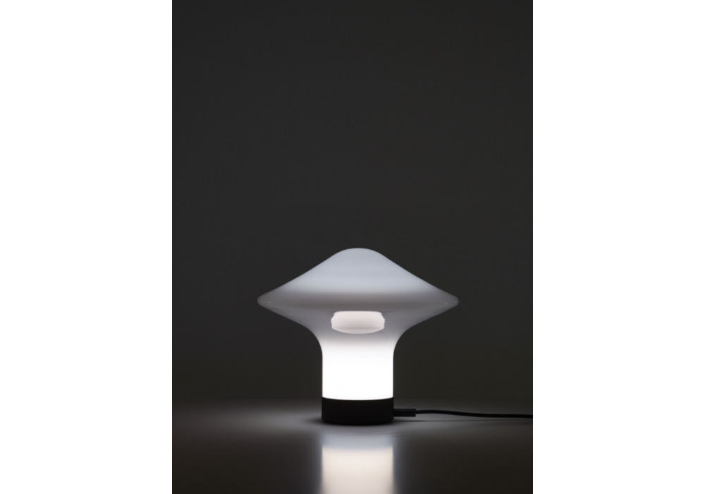 Trottola von Federico Peri für Brokis entworfen, ist eine Tischleuchte aus Glas mit Glanzeffekt in verschiedenen Ausführungen. Leuchtenkörper und Dimmer bestehen aus eloxiertem Metall in der gleichen Farbe. Das Netzkabel ist mit einem elektronischen Dimmer zur Einstellung der Lichtintensität und Farbtemperatur (TW) ausgestattet. Als Lichtquelle dient eine dimmbare LED.
