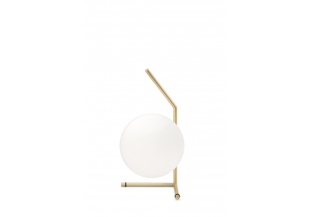IC T1 von Michael Anastassiades für Flos entworfen, ist eine Tischleuchte mit diffusem Licht. Gestell aus Messing, schwarzem oder verchromtem Stahl. Opaler Diffusor aus geblasenem Glas. Dimmer am Netzkabel. Leuchtmittel nicht enthalten.