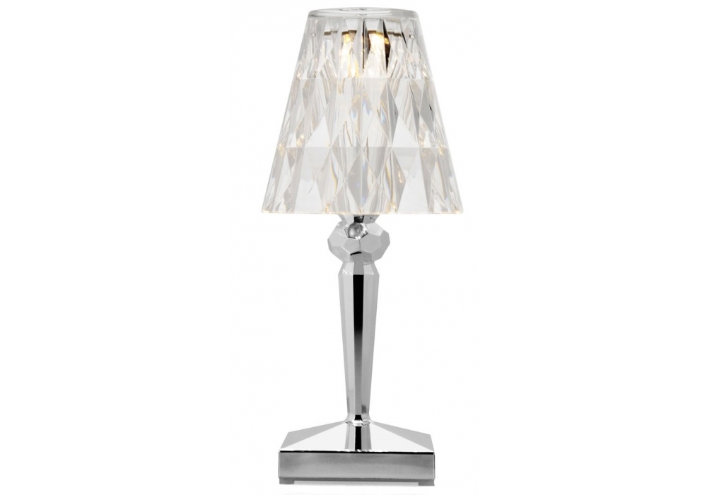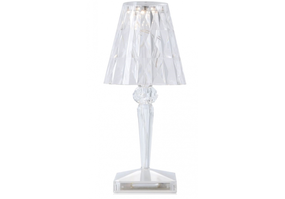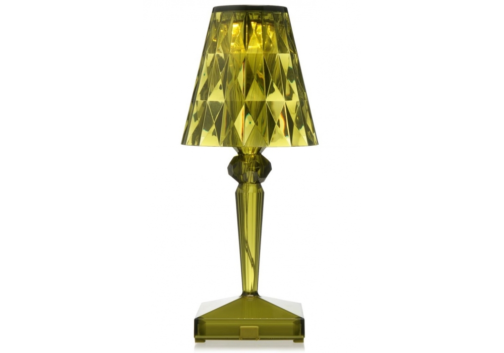 Battery von Ferruccio Laviani für Kartell entworfen, ist eine Tischleuchte aus transparentem, durchgefärbtem oder metallischem PMMA.