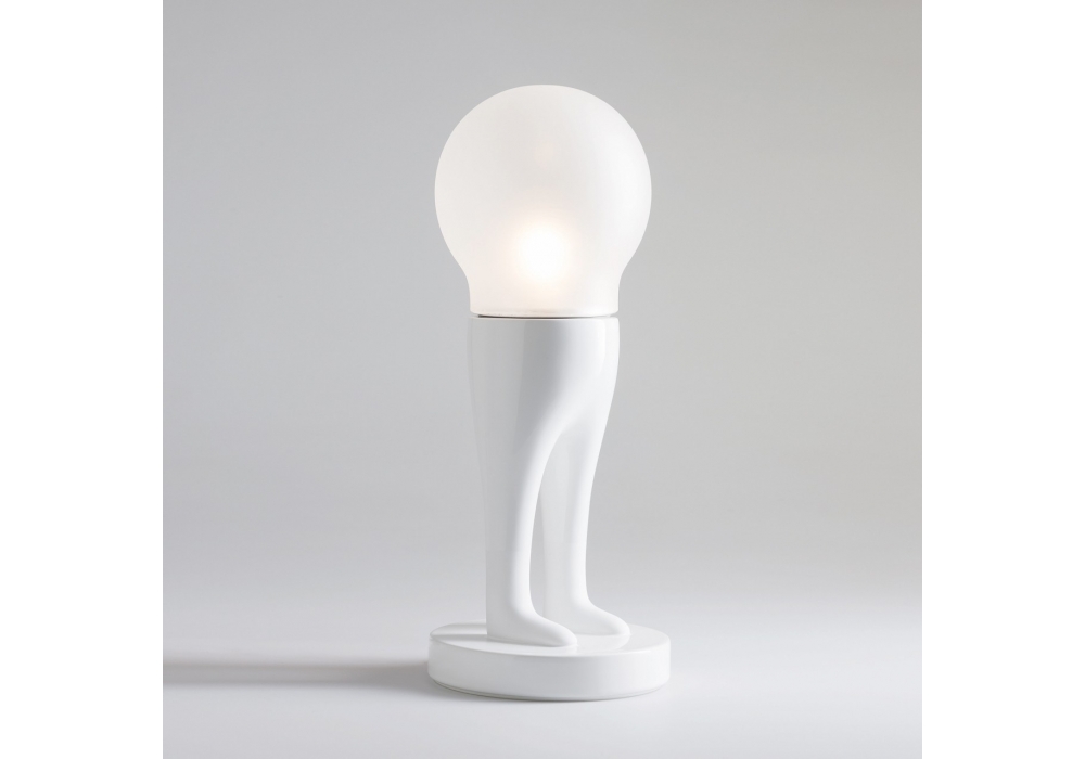 Domlight, von Matteo Cibic für Bosa entworfen, ist eine Tischleuchte in Keramik mit glänzender weißer Glasur mit geblasenem Glas Kuppel ganz handgefertigt und einem farbigen Stoffkordel, der eine Notiz von Fröhlichkeit bringt.