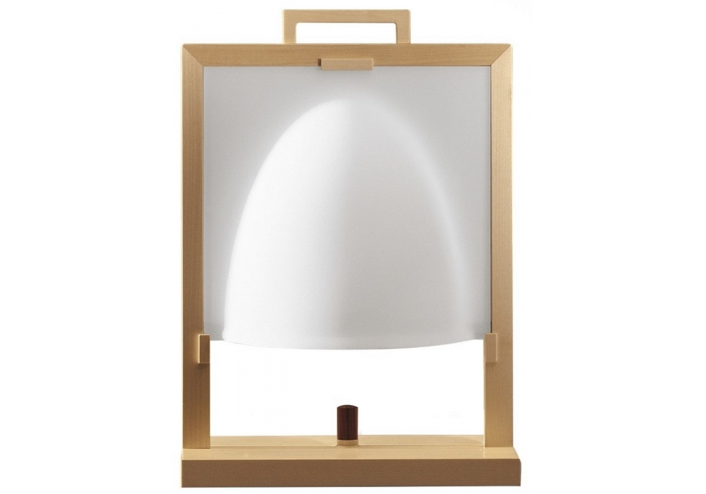 Nao is a table lamp designed by Chi Wing Lo for Giorgetti. Table lamp with the structure in solid polished maple and varnished metal. The lampshade is in press moulded, oven glazed glass.. A knob in solid pau ferro is located at the centre of the base and it is used for changing light effect. The lamp is opaline halogen (220V-150W-E27).