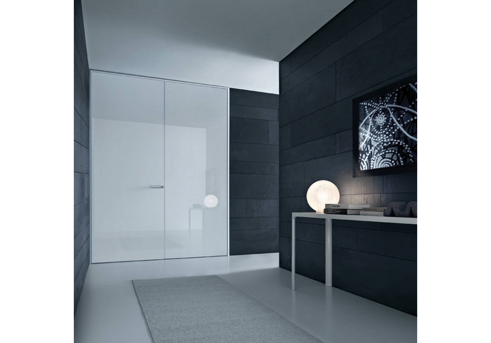 Link+ von Giuseppe Bavuso für Rimadesio ist Bei diesem Projekt werden alle Möglichkeiten für lackierte Glastüren angeboten, in den Exklusivfarben der Kollektion Rimadesio. Link+ in der Slim Ausführung erfordert die Anwesenheit des Einbauzarge, der eine einwandfreie Montage der Tür gewährleistet. Der Einbauzarge ist vollständig aus Aluminium gefertigt.