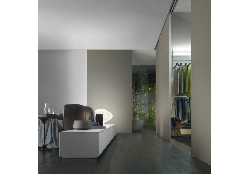 Graphis Plus von Giuseppe Bavuso für Rimadesio ist das System, das dem Schlafbereich gewidmet ist, um begehbare Kleiderschränke und Nischen zu schließen. Der Entwurf ergänzt die Schiebetüren Graphis und Graphis plus, die sich in der Version light durch eine einseitig Platte auszeichnen und Leichtigkeit und Reinheit des Designs miteinander vereinen. Das System besteht aus einem Strukturprofil aus Aluminium und ist mit exklusiven Dichtungen aus silikonbehandeltem Gummi und Polypropylen ausgestattet, die einen optimalen Staubschutz bieten.