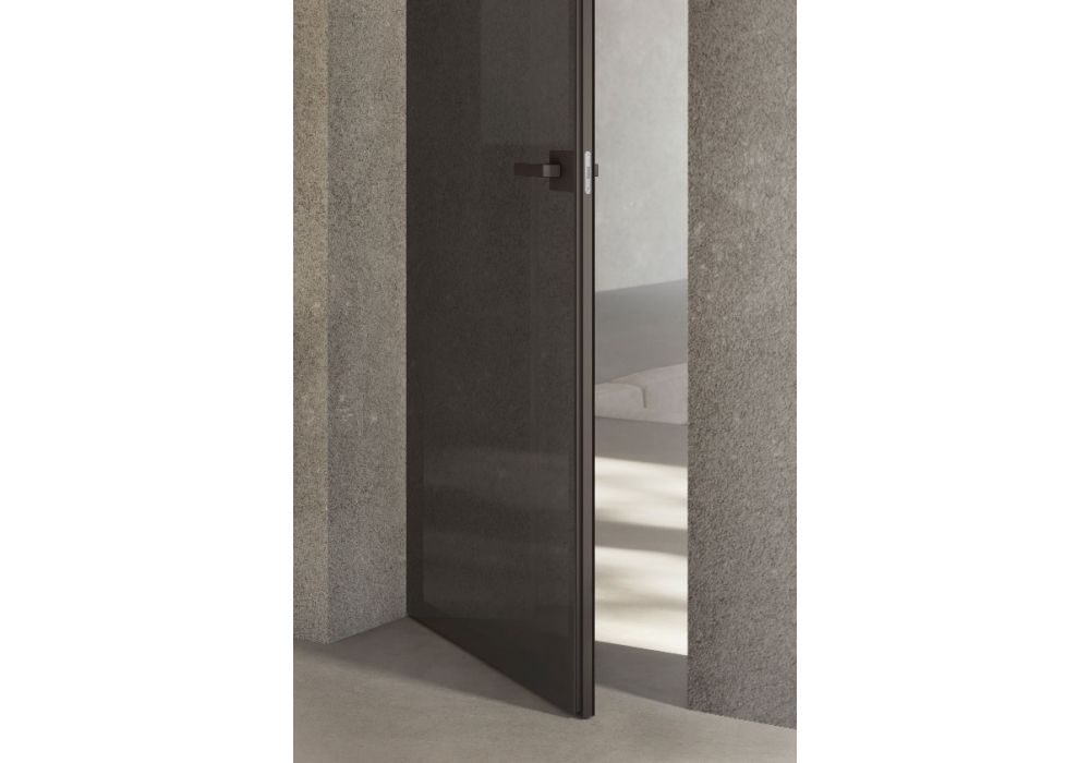 Como Vetro Singolo von Viva entworfen, ist eine Pendeltür mit Einfachglas, komplett mit Aluminiumtür und -rahmen. Erhältlich in verschiedenen Ausführungen.