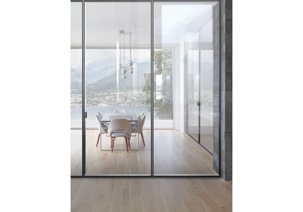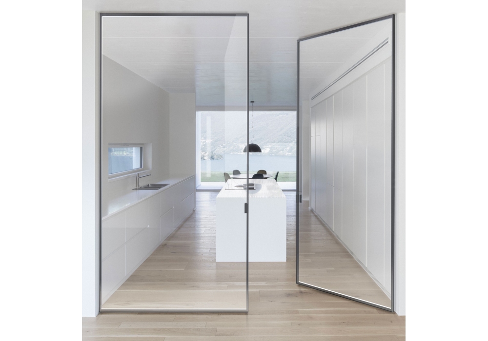 Como Pivot Vetro Singolo von Viva entworfen, ist eine Drehtür aus Glas und Aluminiumprofilen. Erhältlich in verschiedenen Ausführungen. Griff und Mechanismus enthalten. Einzelglasversion.