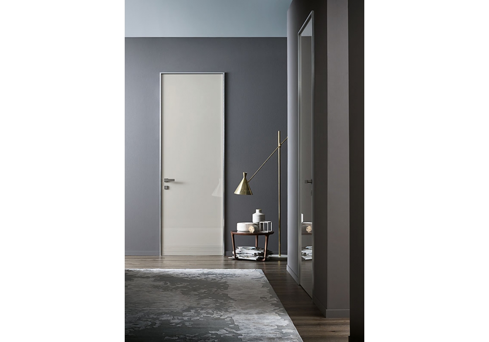 L41 Large von Piero Lissoni für Lualdi entworfen, ist eine Designtür mit Holz- oder Glastür und Aluminiumpfosten. Erhältlich in verschiedenen Ausführungen.
