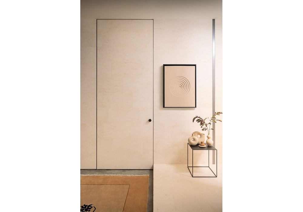 Compass 55 von Lualdi ist eine flächenbündige Tür für Innenräume mit wandbündigem Drehpunkt, die sich durch eine Wabenstruktur und einen Aluminiumrahmen auszeichnet. Perfekt koplanar und mit einer Schwenktür ausgestattet. Erhältlich in verschiedenen Ausführungen.