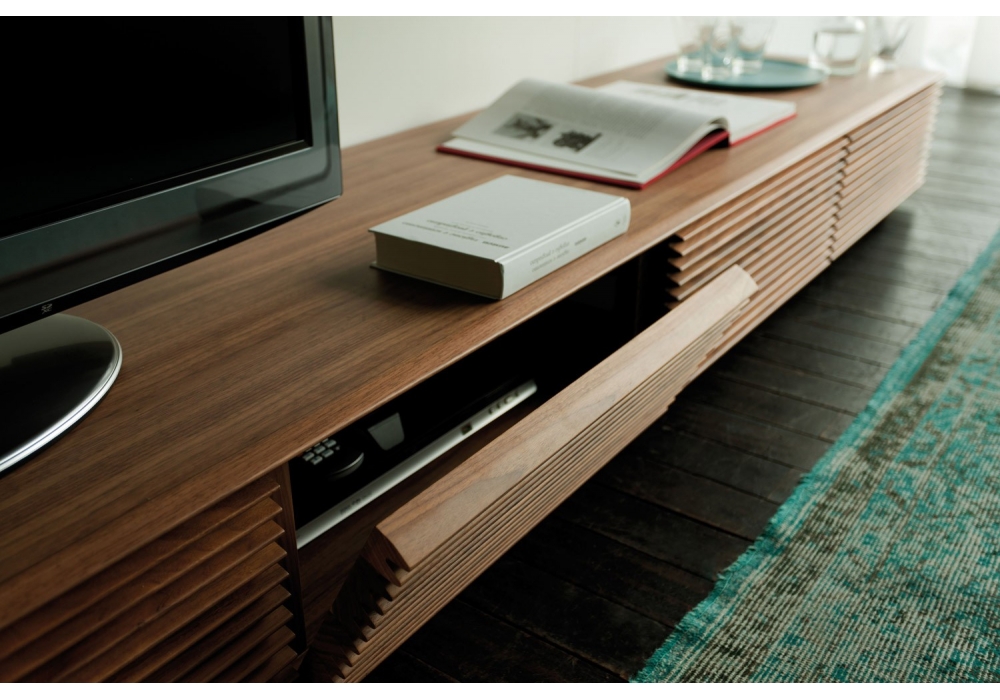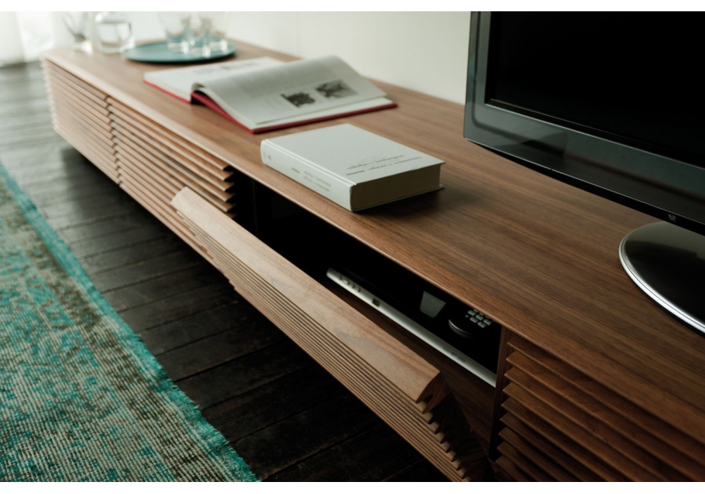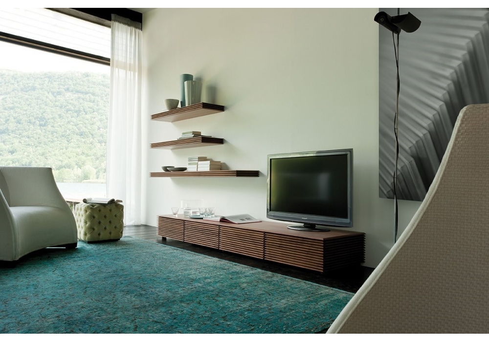 Riga von T. Colzani für Porada entworfen, ist ein TV-Ständer aus massivem Nussbaum Canaletta mit zwei seitlichen Schubladen und zentrale Klapptür. Verfügbar in verschiedenen Ausführungen und 2 Größen.