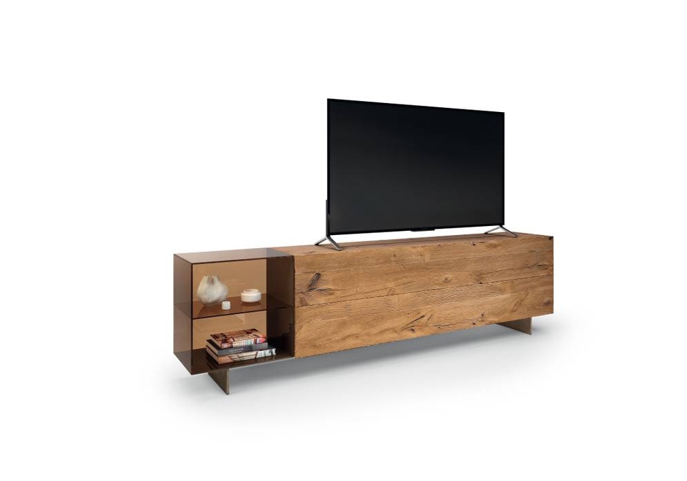 36e8 von Daniele Lago ist ein Fernsehgerät, das in Größe, Form und Farbe angepasst werden kann. Es ist möglich, Behälter vollständig aus Glas, Glas oder Wildholz zu integrieren.