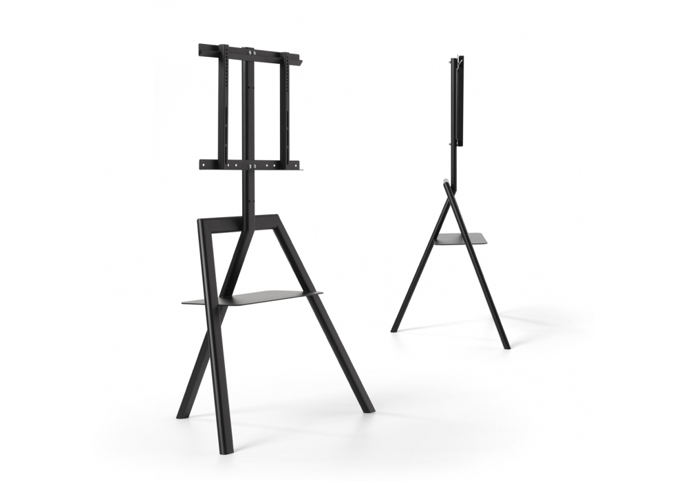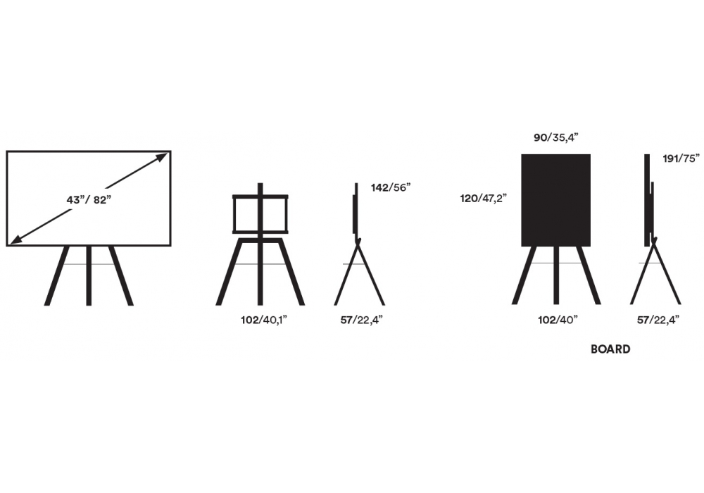 Cartesio von Lapo Ciatti für Opinion Ciatti entworfen, ist ein Multimedialer Ständer/Halter aus Stahl mit Kabelauffangsäule und integrierter Ablage, um 43 bis 82 Zoll Fernseher oder magnetische Schreibtafel mit Aluminiumrahmen zu tragen, erhältlich in zwei Versionen: schwarz für Kreide, weiß für Marker. Verfügbar in mehreren Ausführungen.