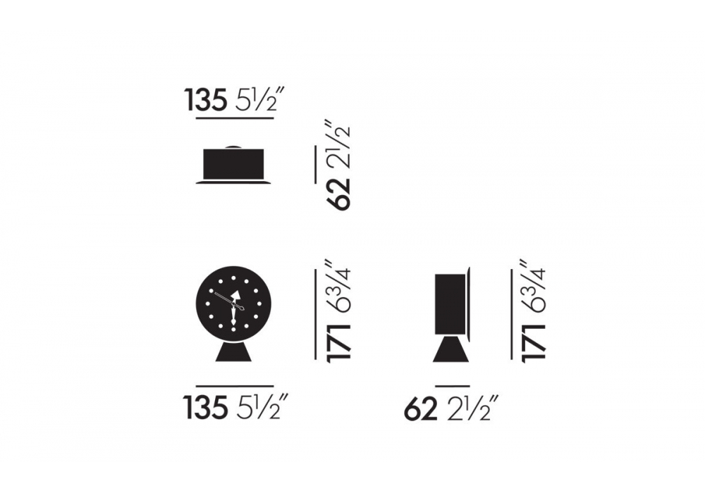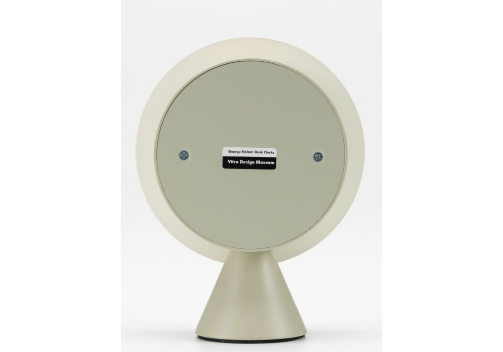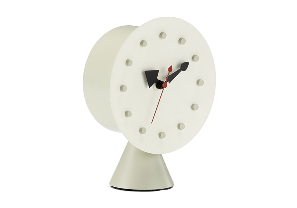 Cone Base Clock von George Nelson für Vitra ist eine Tischuhr aus lackiertem Metallfolie Pulver.