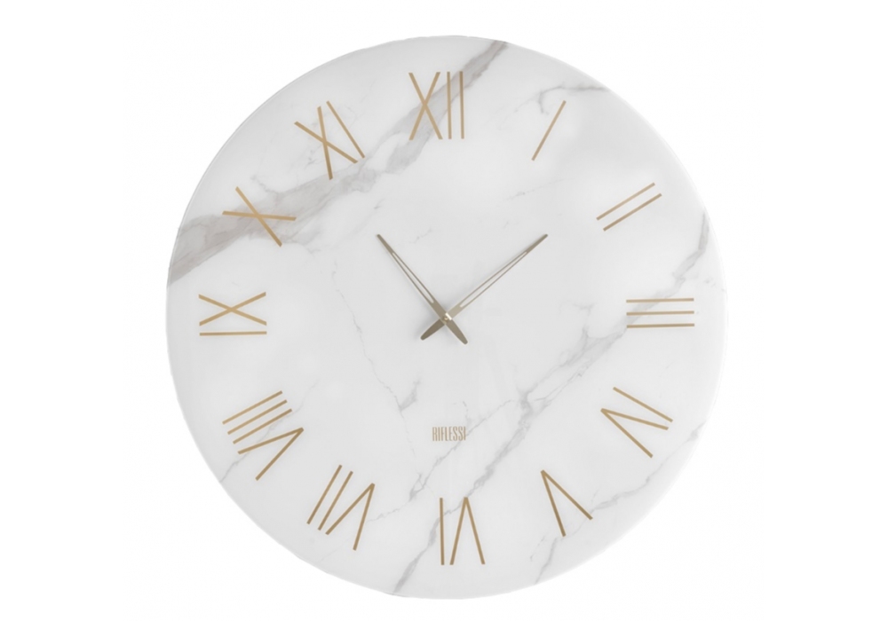 Portofino von Riflessi entworfen, ist eine Wanduhr aus siebgedrucktem Glas mit Marmoreffekt. Verfügbar in mehreren Ausführungen.