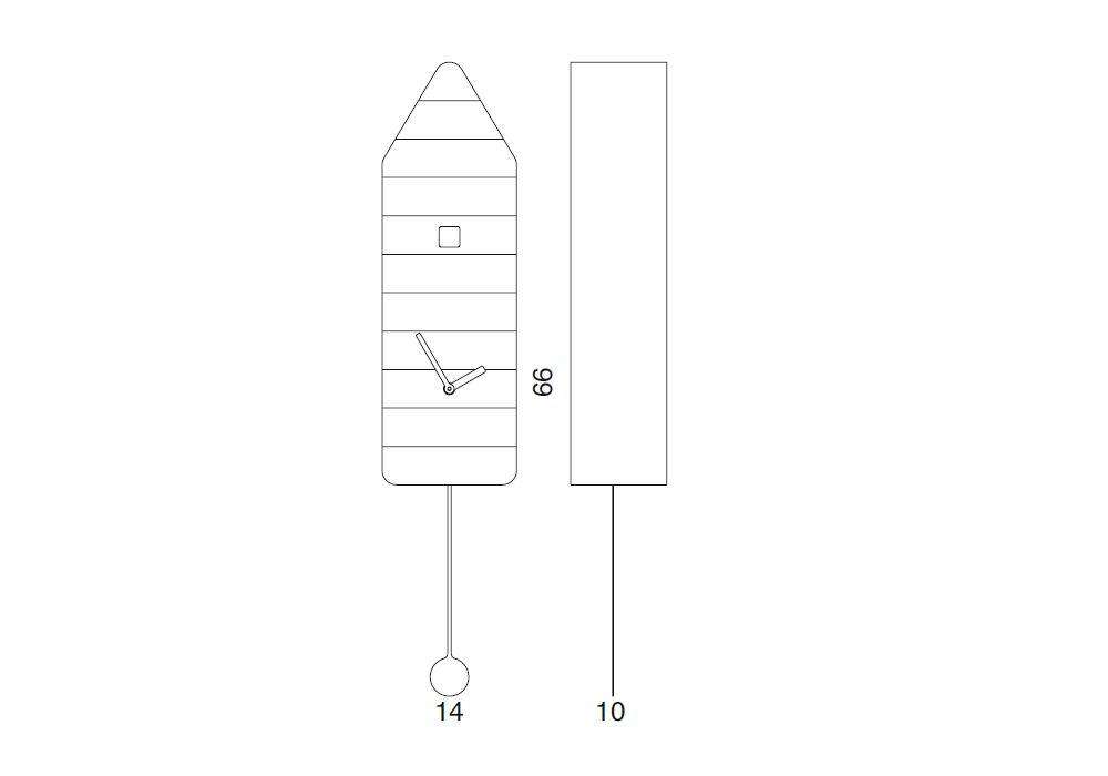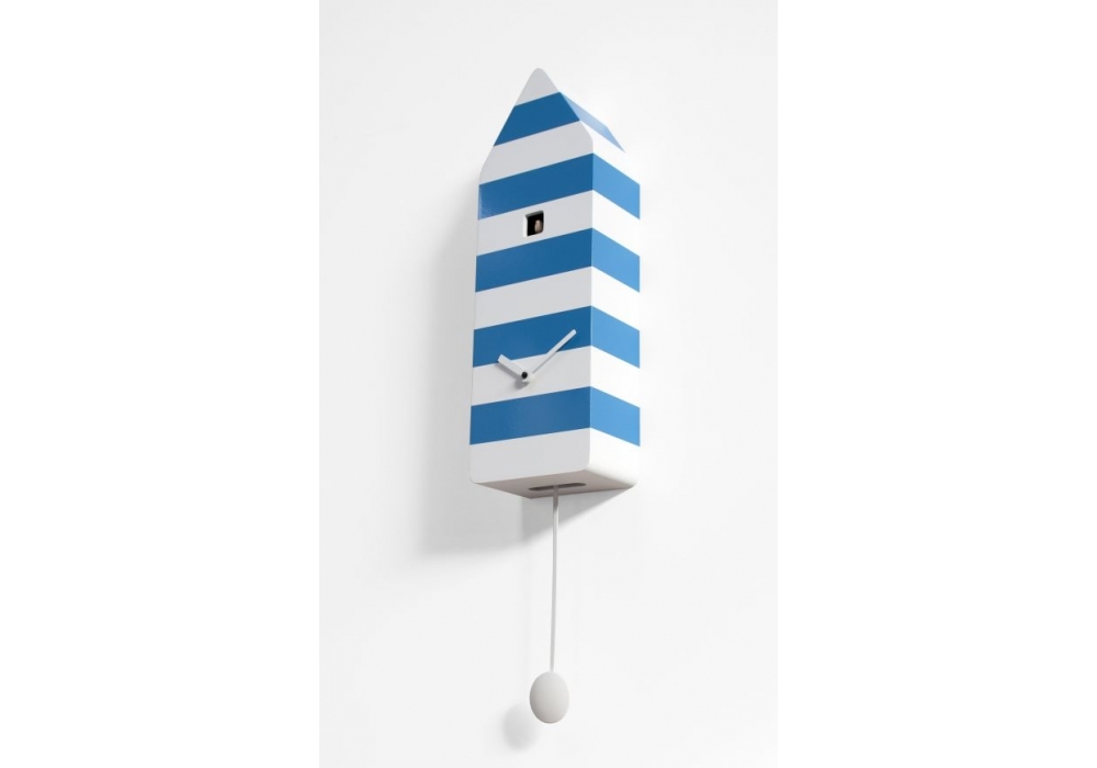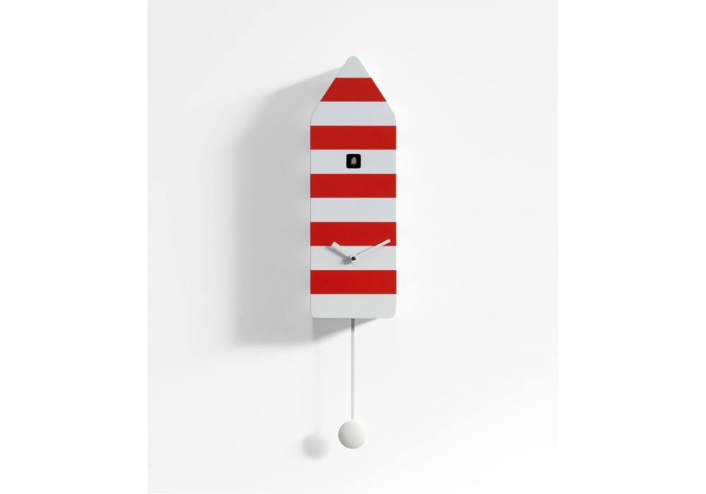 Capri von Alberto Sala für Progetti entworfen, ist eine Kuckucksuhr aus lackiertem Holz. Es ist mit einem batteriebetriebenen Quarzwerk mit einem Sensor ausgestattet, der den Klingelton bei Lichtmangel automatisch ausschließt.