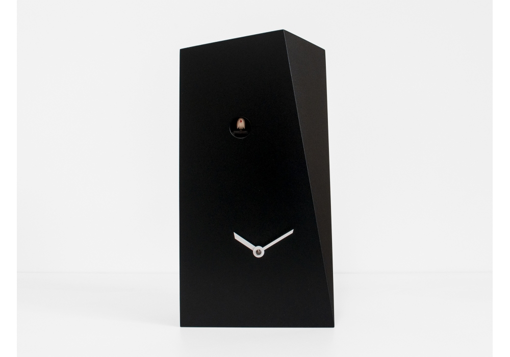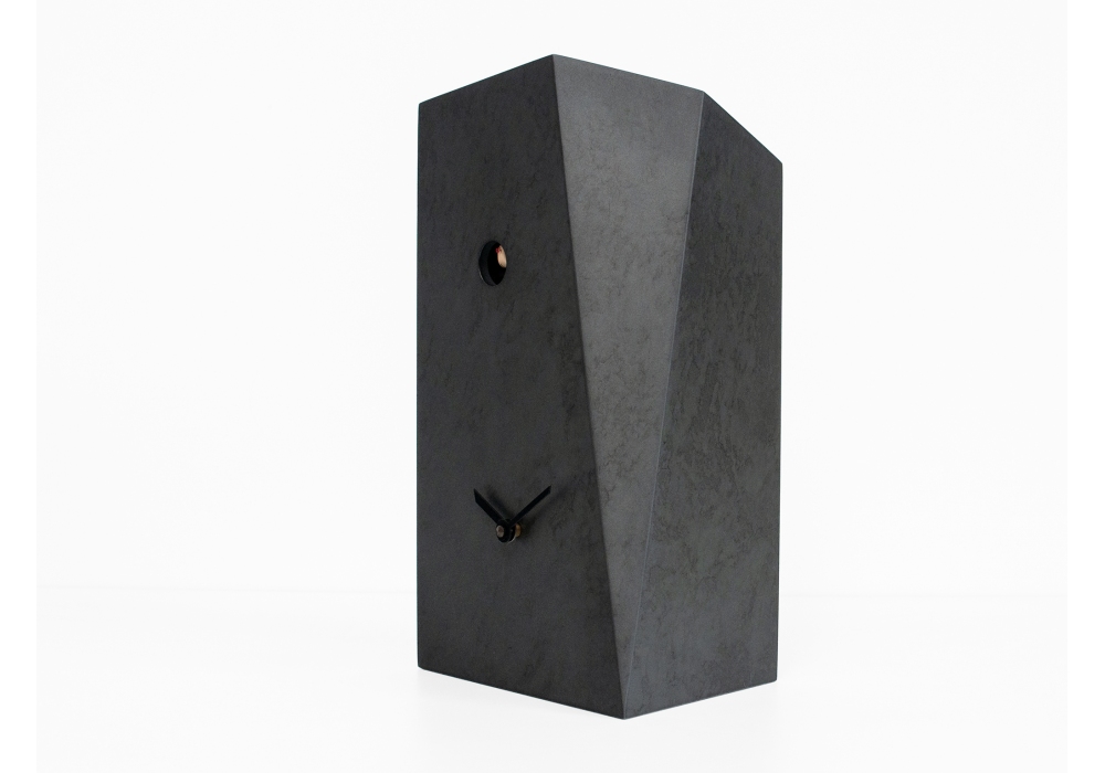Monolith von Ewald Winkelbauer für Progetti entworfen, ist eine Tischkuckucksuhr mit Holzstruktur, die mit ungiftigen Farben bemalt oder mit einer Farbe auf Flüssigmetallbasis veredelt ist, die sie wertvoll und einzigartig macht (Schwarzbronze-Finish). Das Kuckuckswerk, deutsches Design, ist von hoher Qualität und wird mit zwei Batterien betrieben, hat einen lichtempfindlichen Sensor, der es nicht zum Singen bringt, wenn es dunkel ist. Mit einem Druckknopf können Sie die Intensität des Tons regulieren oder ganz ausschalten.