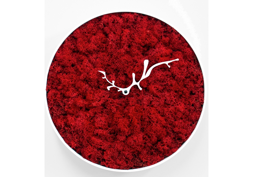 Mossy von Progetti c.r. for Progetti entworfen ist eine Wanduhr aus Holz, Kunststoff und stabilisierten Flechten. Hochwertiges, in Deutschland hergestelltes, batteriebetriebenes Quarzwerk.