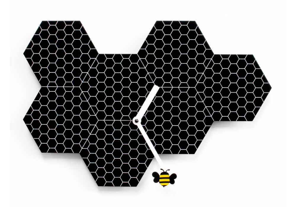 Time2bee von Alessia Gasperi für Progetti entworfen, ist eine Wand-uhr aus Stahl. Es greift die Form und Grafik der Bienenstöcke auf, in denen sich eine gelb-schwarze Biene, die am Minutenzeiger hängt, zwischen den Zellen bewegt. Batteriebetriebenes Quarzwerk. Verfügbar in mehreren Ausführungen.