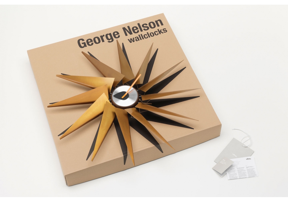 Vitra Turbine Clock: In einer Vielfalt von Materialien und skulpturalen Formen verkörpern George Nelsons Uhren das Lebensgefühl der 50er Jahre. Seine Wanduhren sind auch heute noch eine erfrischende Alternative zu gewöhnlichen Zeitmessern. Das Vitra Design Museum legt eine Reedition der bei Sammlern begehrten Entwürfe in originalgetreuer Form wieder auf. Kollektion Vitra Design Museum.